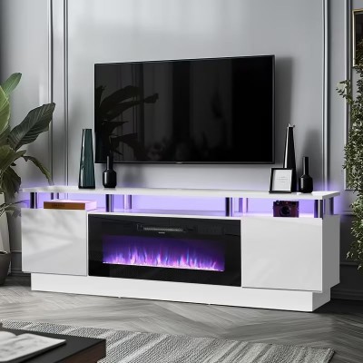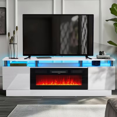 покрытие > saat mağazası > Local warehouseoneinmil Fireplace TV Stand with 36" Electric Fireplace, LED Light Entertainment Center, 2 Tier TV Console Stand for TVs Up to 80", Fireplace for The Living Room TV Stand, (White/Black)